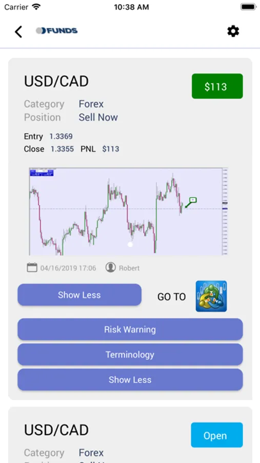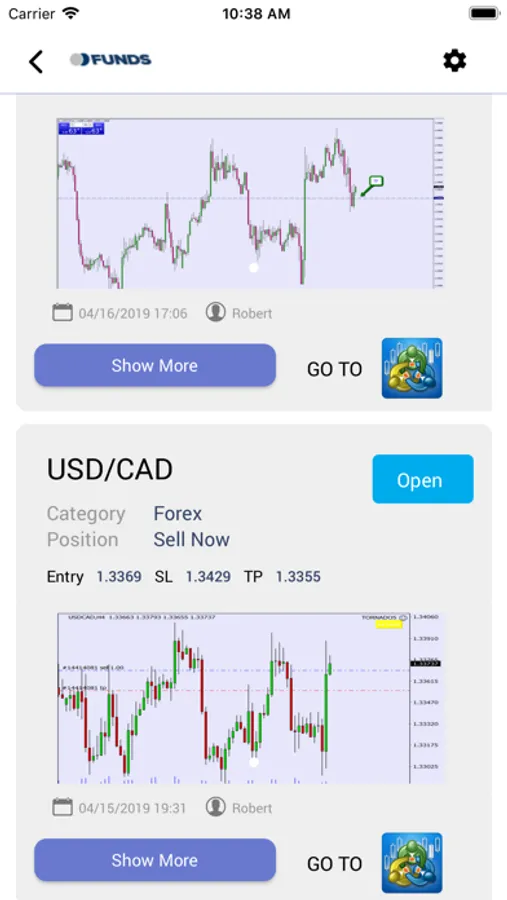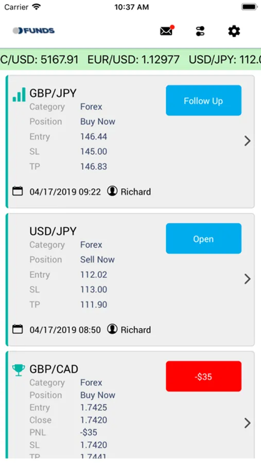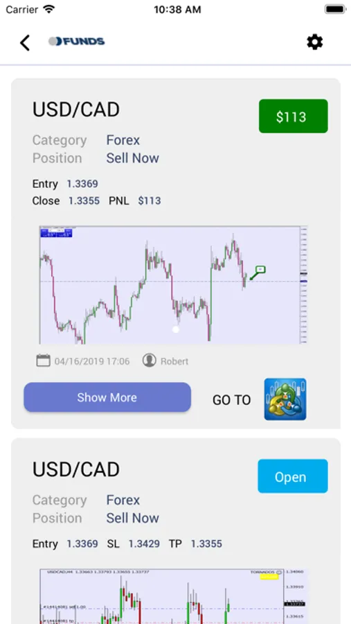8Funds App has the ability to benefit from analyzation generated by the system and to follow each trade position in real time starting from the open of the trade, through the updates and finally the close of that position.