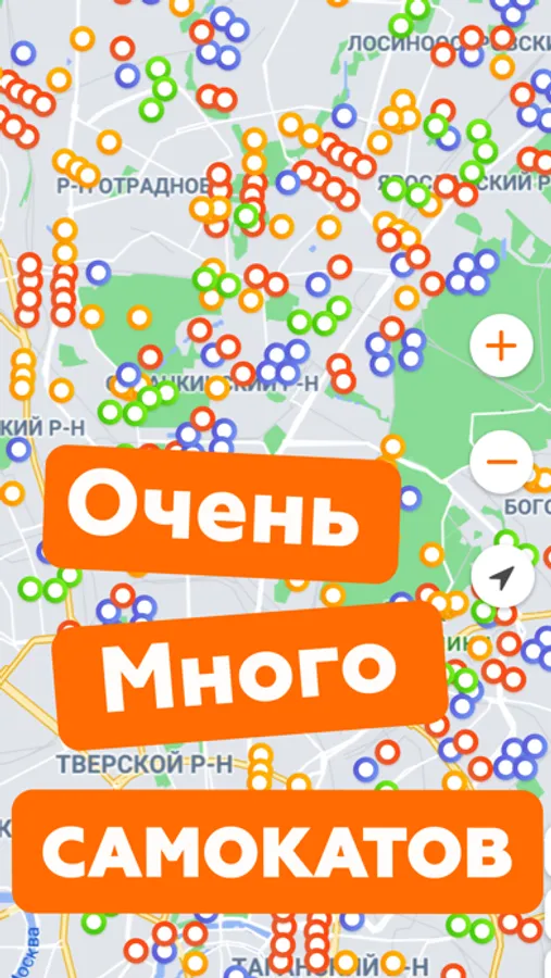 Все Самокаты - приложение позволяет увидеть все самокаты на одной карте.
