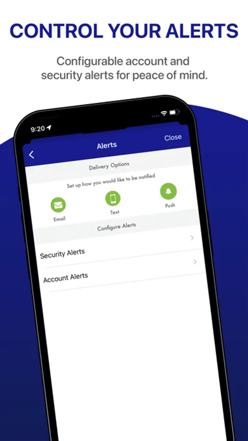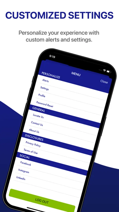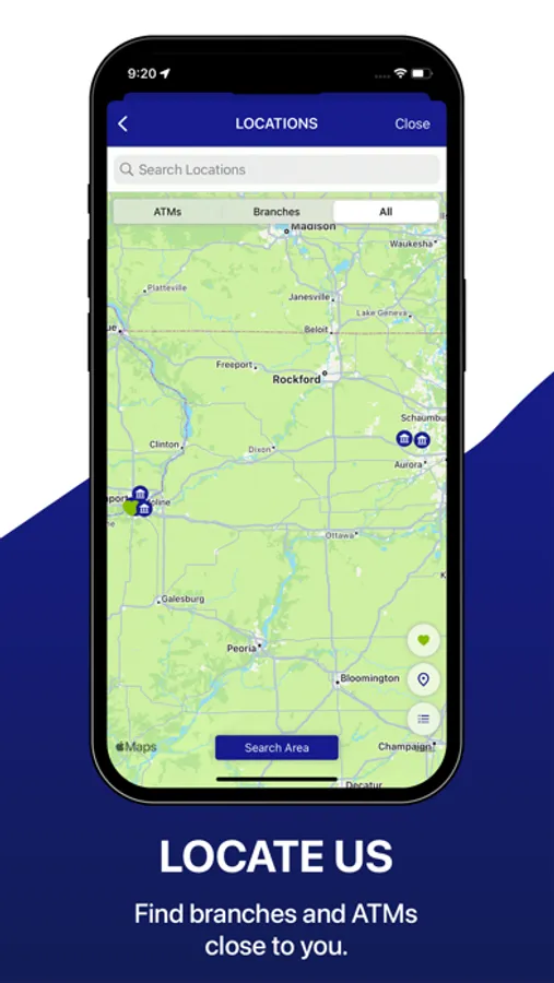 Locations – Find nearby branch locations using the device's built-in GPS.
