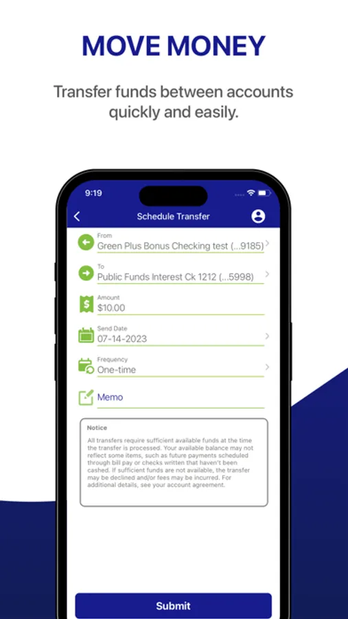 ACH – Complete ACH Transactions on the go when needed to pay employees or bills (Must be set up for this function).