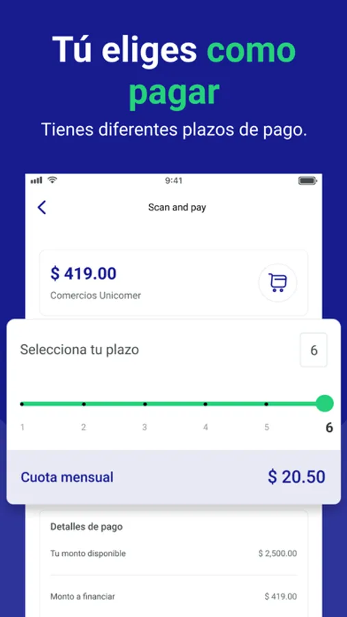 Somos una aplicación que ofrece líneas de crédito a sus clientes para que puedan comprar con ella de forma re-fácil y re-segura.