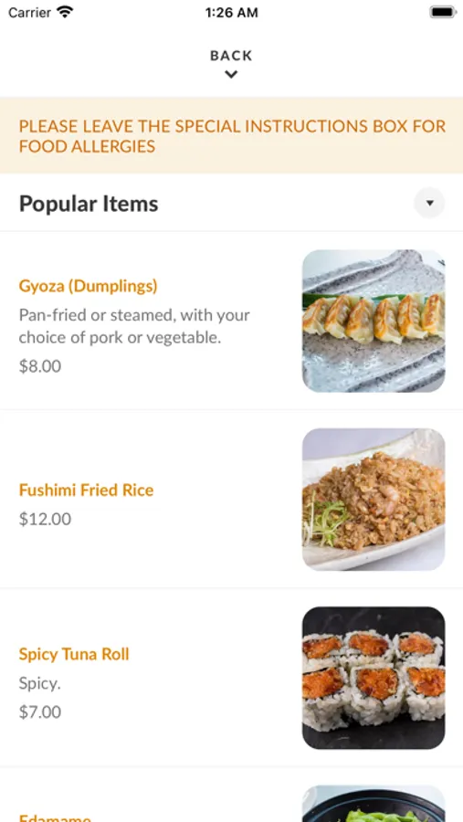 With the Fushimi mobile app, ordering food has never been easier. Whether you're looking for a quick snack or a full meal, we've got you covered. Just browse our easy-to-use menu, customize it how you'd like, place your order using our secure payment system, and sit back! A push notification will alert you when your order will be ready.