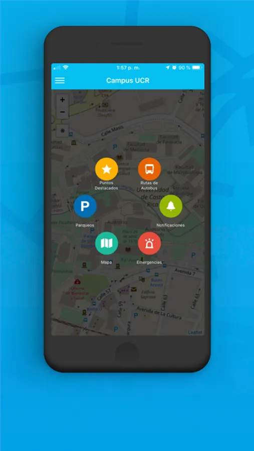 Encuentre parqueos para automóviles y bicicletas, bibliotecas, edificios, cafeterías y sodas, áreas deportivas, puntos de reciclaje de desechos.