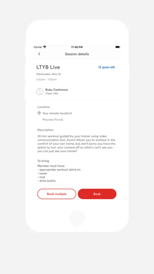LTYB Personalise Training sessions for each member within a group training class. Each studio has between 50-80 sessions times per week that members can book into via the APP and receive a specific workout based on goals, training history, limitations and fitness levels.