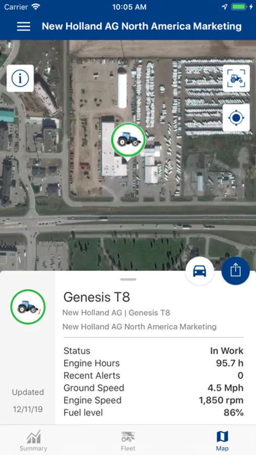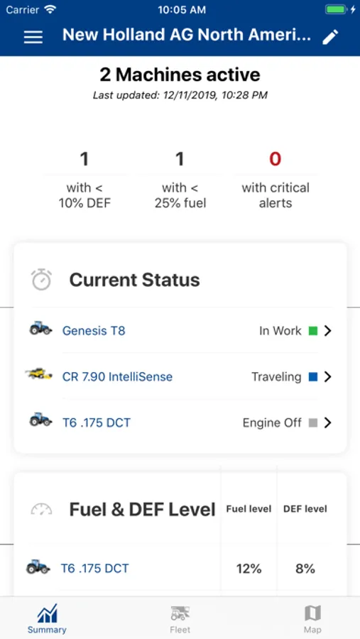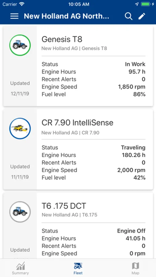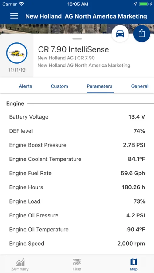 • View updated machine telematic data such as fuel level, engine hours, engine performance, and other machine parameters.