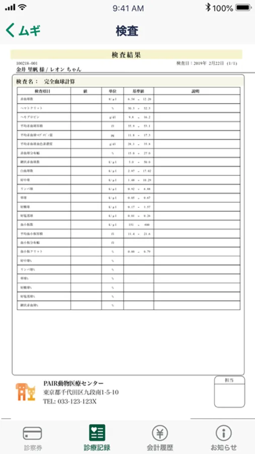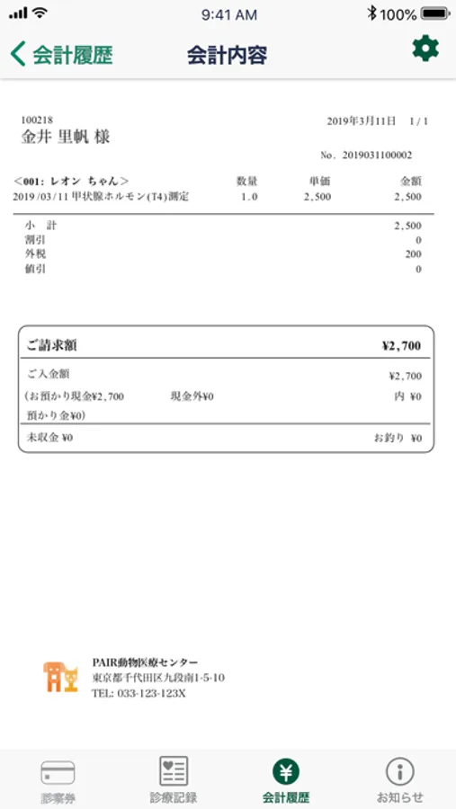 ・動物病院からの情報共有された内容を確認できます。(診療明細・検査結果・予防履歴)(※ただし、全ての内容が送信されるわけではございません)