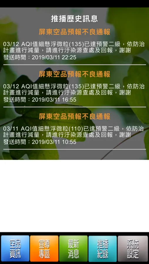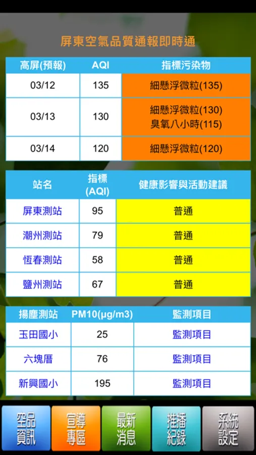 屏東空氣品質通報即時通 Screenshots
