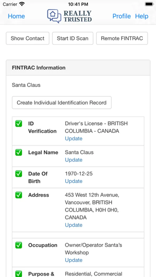 Using your camera as a Driver's License & ID Scanner allows quick and accurate completion of a FINTRAC Individual Identification Record. Submit the fully-completed FINTRAC PDF to your brokerage in just moments. ReallyTrusted is trusted by thousands of agents & brokerage compliance officers to help them remain in legal compliance with Canada's federal anti money laundering framework.