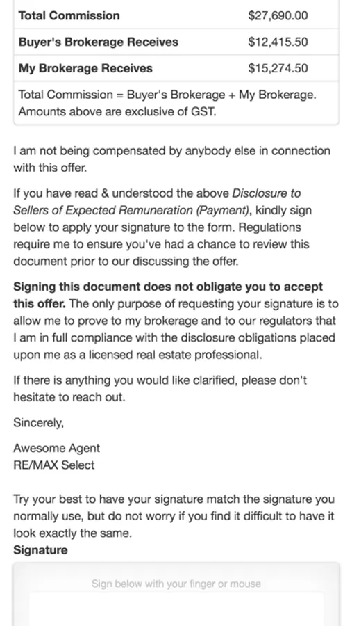 Create BC Financial Services Authority disclosure forms including the Disclosure of Representation in Trading Services, Disclosure of Expected Remuneration (Payment), Disclosure of Risks to Unrepresented Parties, Disclosure for Residential Tenancies, or the BCREA Privacy Notice & Consent while on the go or in the office. No need to keep track of documents - unlike using CREA Realtor WEBForms & Authentisign or DocuSign, submission of both signed and unsigned documents occurs completely automatically.
