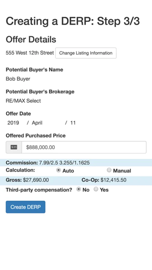 Really quickly calculate commissions using our "Quick DERP Calculator" feature. Commission numbers are updated in real-time as you enter different sales prices or commission amounts.