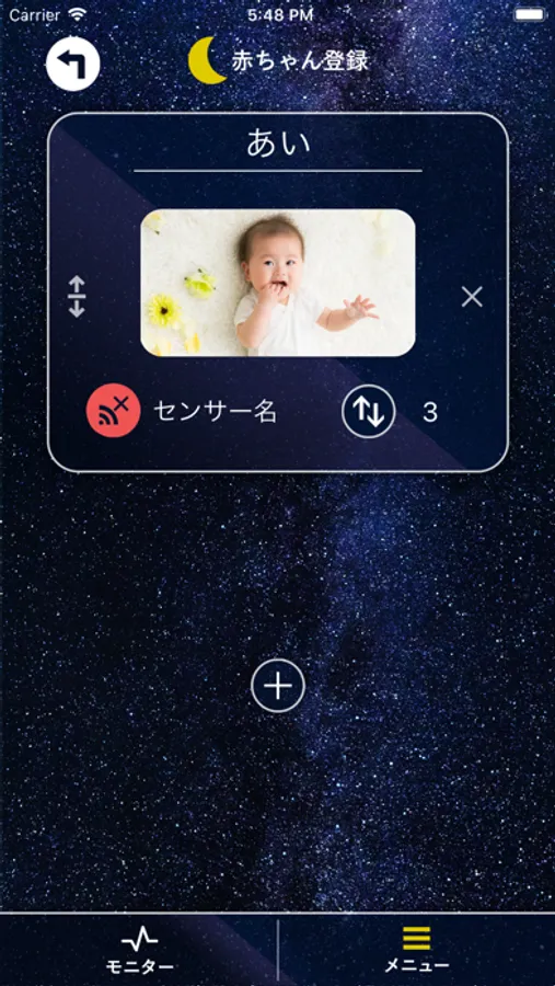 Napplee (hereinafter referred to as "this application") uses separately sold baby sensors Baby Ai series and IBUKI series (hereinafter referred to as "dedicated baby sensors") to detect the decrease in respiration estimated from the body movements of sleeping infants. If you do, you will be notified by an alert sound.