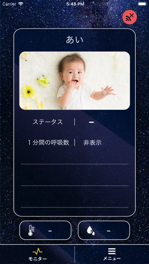 ※Average breathing rate, temperature and humidity are not displayed with this app alone. A dedicated baby sensor (sold separately) is required. When wirelessly connecting the special baby sensor and iPad/iPhone, please bring the sensor and iPad/iPhone closer together.
