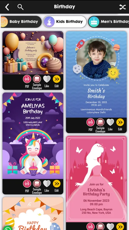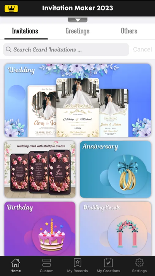 Create Custom Invitations & Greetings by simply choosing a template and edit it with your own Photos, Texts, Stickers to invite your friends and family for any occasion.