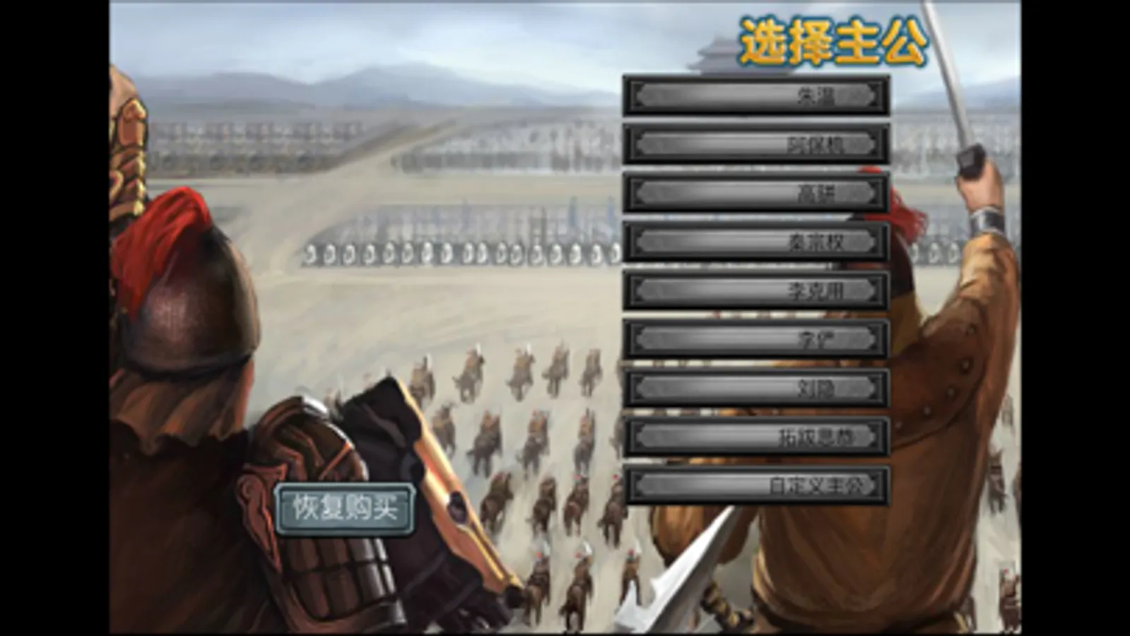 本游戏是以中国古代 残唐五代 为背景的模拟游戏,共有残唐五代史中记载的700多名武将,每个武将作者都收集了人物列传。
