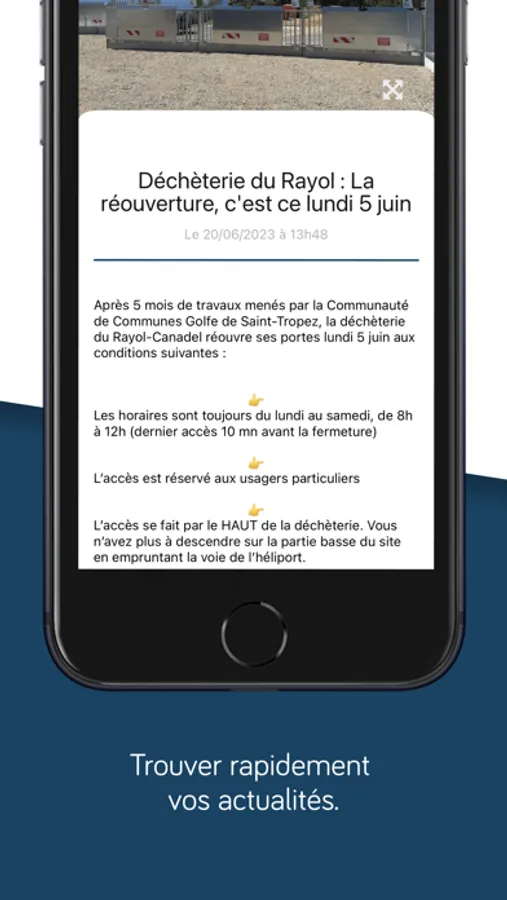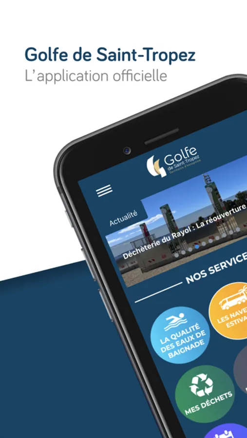 Grâce à l'application Golfe de Saint-Tropez recherchez des informations pratiques ou des informations liées à nos services, soyez alerté ou signalez.