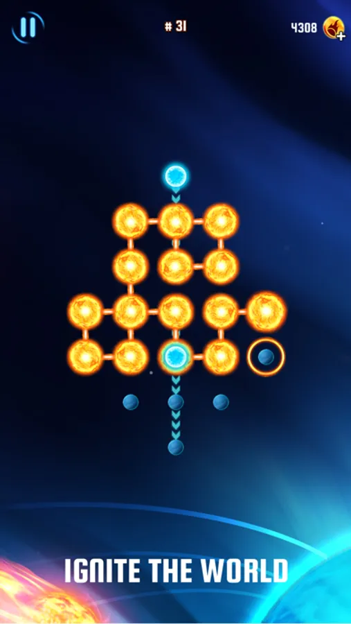 As you connect the dots, ignite targets and solve levels, you will gain an invulnerability shield. This shield is lit! You collided with an ice ball? Stay calm! The shield is active and it protects you. It’s your turn to send them into space.