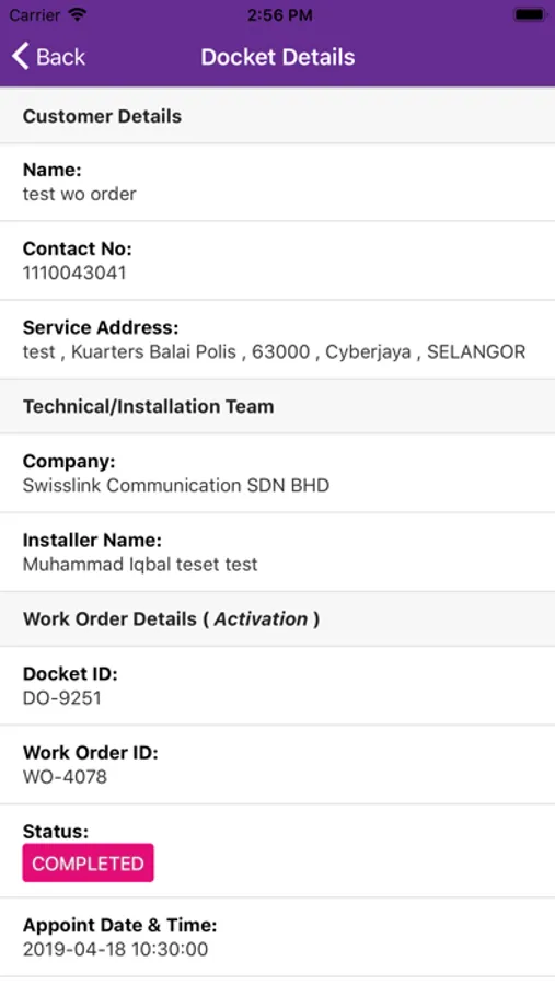 This application is for City Broadband installers. Installers do not need to use paper for installation anymore. All can be done using this mobile application. Installer can view work order that needs to be done. Once the work order is done the installer can see docket id of the work order where it means the installer work is done for the particular job.
