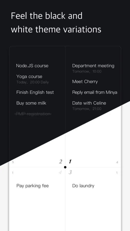 Priori is a time management tool that implements the Eisenhower Matrix rule on mobile devices. Faced with endless work and life pressures, Priori hopes to minimize the burden of user “to do list” at the visual and operational levels through an effective but minimalist design language, while using the Eisenhower Matrix rule to return focus to the focus. Above the most valuable things.