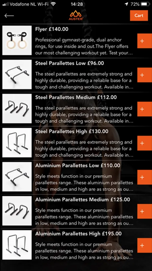 • Shop for additional products in the Auster range via the app, to complement your training