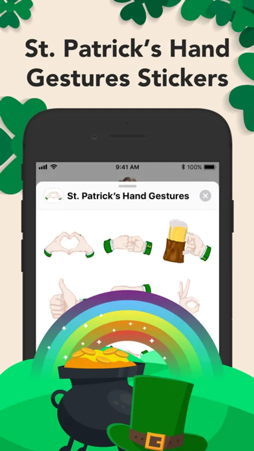 Are you ready for St. Patrick's Day? With our stickers you will completely feel the Green mood! Try your luck and download St. Patrick's sticker pack.