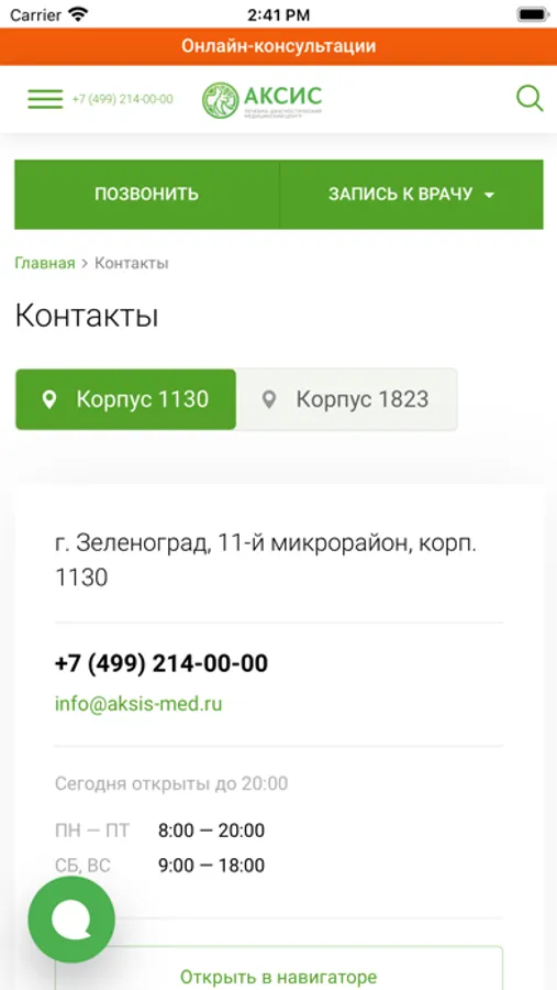 При помощи этого приложения все жители Зеленограда, Москвы и подмосковья могут записаться к врачу, задать вопросы онлайн врачам медицинского центра "АКСИС".