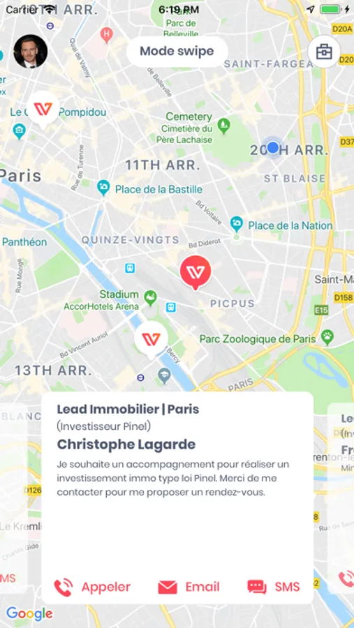 Vos commerciaux reçoivent une notification pour chaque nouveau lead et prennent en charge leurs prospects depuis le BO desktop ou l'appli : SMS, mail, appel et suivi d'affaires (classement des prospects dans le pipe, alertes, relances, suivi de la transformation).
