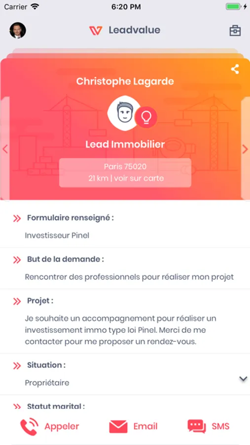 Qualifiez vos leads dans le BackOffice Leadvalue ou choisissez de les distribuer en live à vos équipes commerciales (appli mobile + BO)