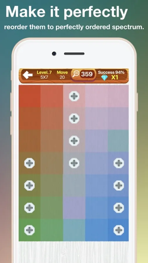 1. Move each wooden color tile and reorder them to perfectly ordered spectrum.