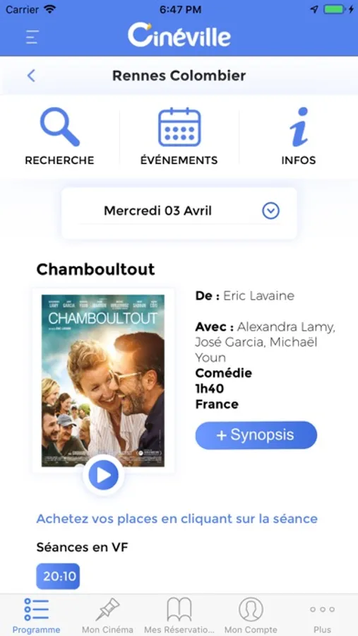 Cliquez sur un horaire pour acheter vos places directement depuis l'application.