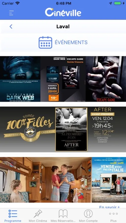 L'application Cinéville vous permet de consulter l'ensemble de nos programmes et évènements en cours et à venir.