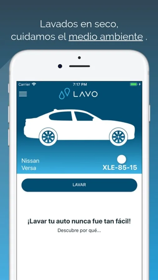 Lavo es una app para lavado de autos en seco en establecimientos exclusivos. No hay necesidad de estar presente o de hacer largas filas al lavar tu auto. Con Lavo solo pide tu lavado y págalo en línea.