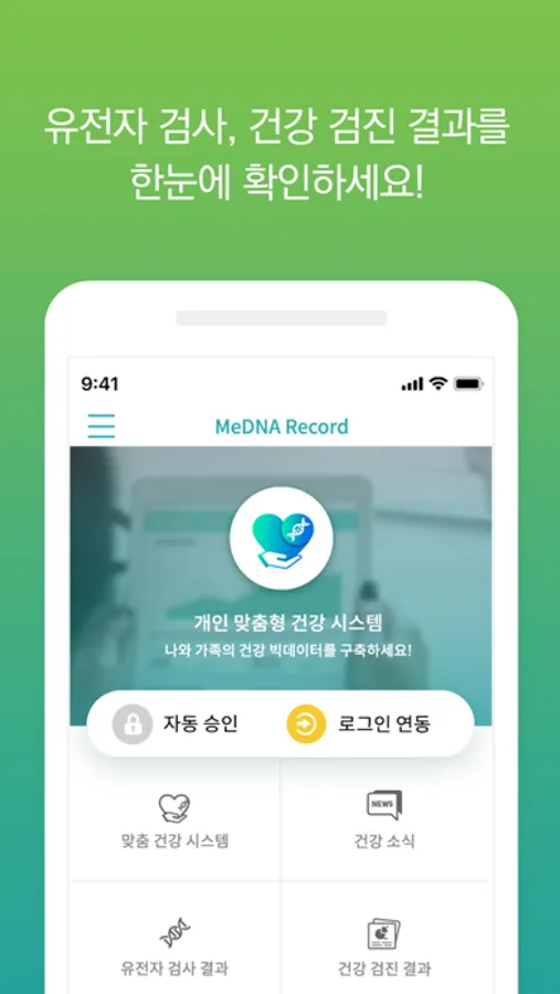 - 유전자 예측 정보+검진결과 비교 분석하여 100세 건강 계획을 수립하세요