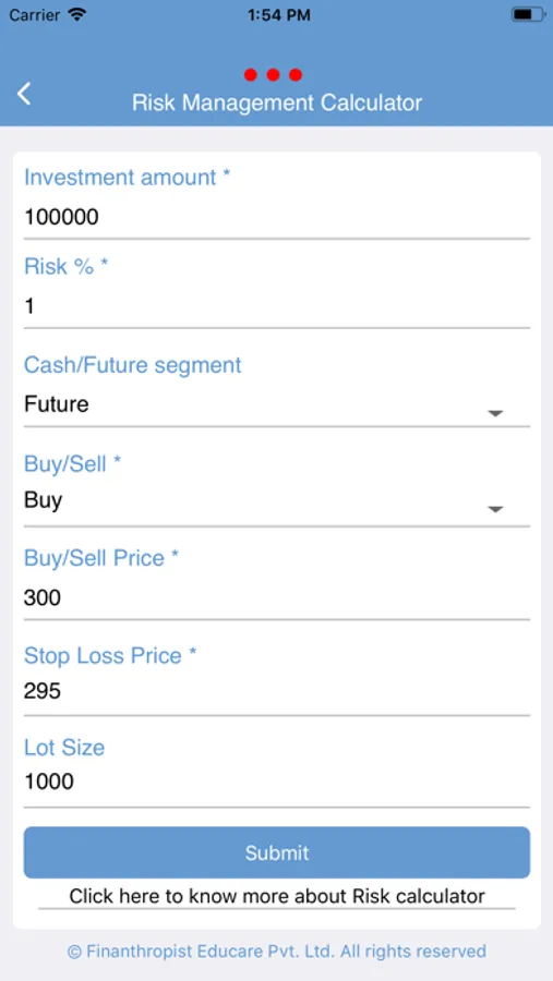 Team of Finanthropist is always alert for your growth in finance. Currently operating from 10 locations of Maharashtra and soon moving towards other states of India. Complete share market education with financial literacy, calls/ tips services through mobile app, lowest brokerage in the industry with top services and portfolio managemenet.