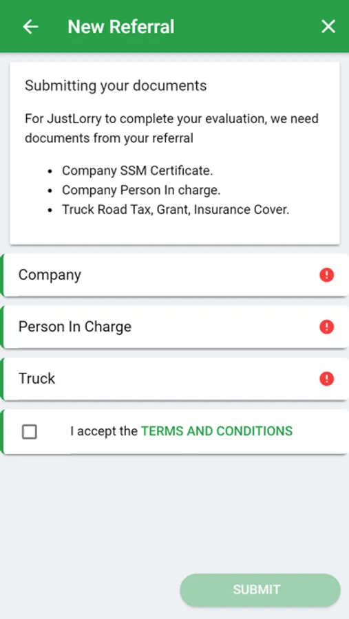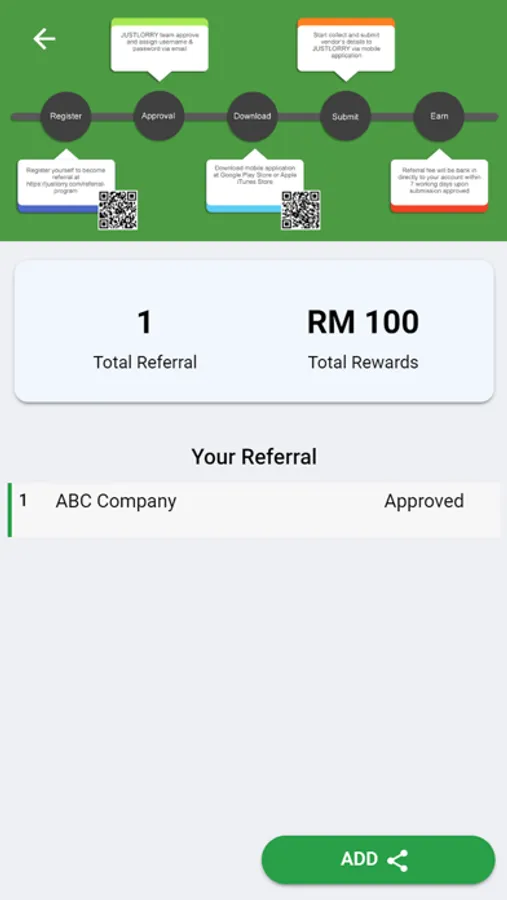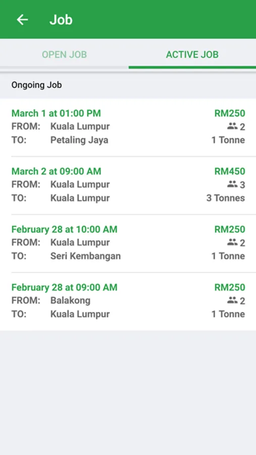 This mobile app for JUSTLORRY partners to accept jobs and post empty trip.