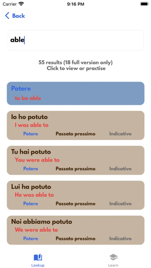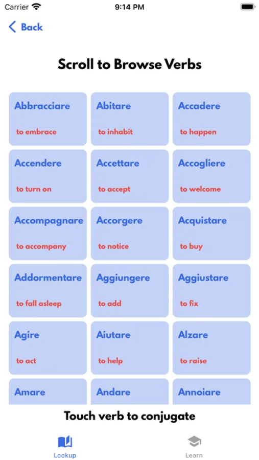 Once fluency improves, VerbSquirt helps the user gain familiarity with the different rules of conjugation for Italian verbs, and with the exceptions, leading to a better understanding of the subtleties of the language.