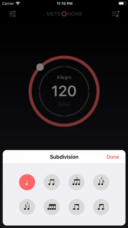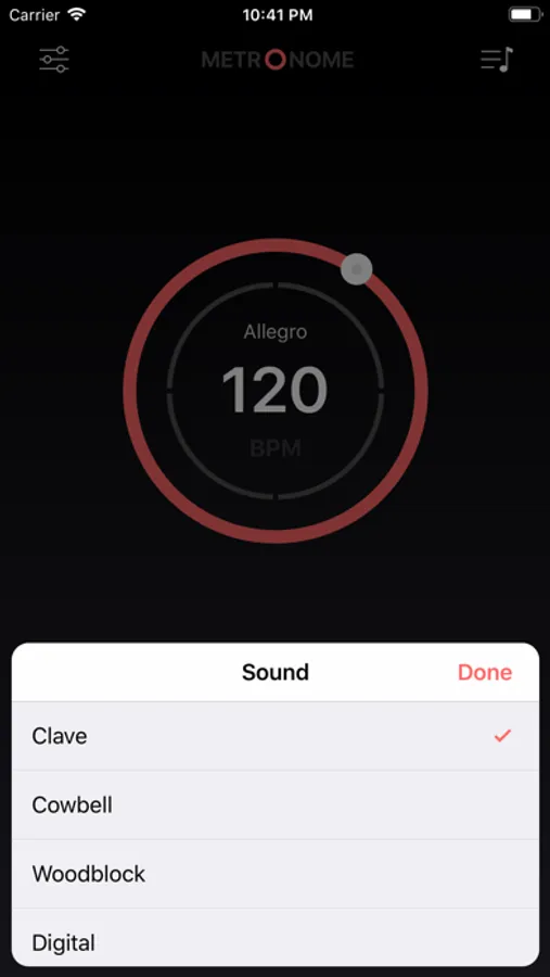 • Metronome Sound:Clave, Cowbell, Woodblock, Digital, Hihat, Rimshot, Snap, Shaker, Tambourine, Bongo