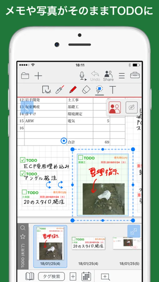 写真や動画、PDFの上にもメモや指示を書き込めます