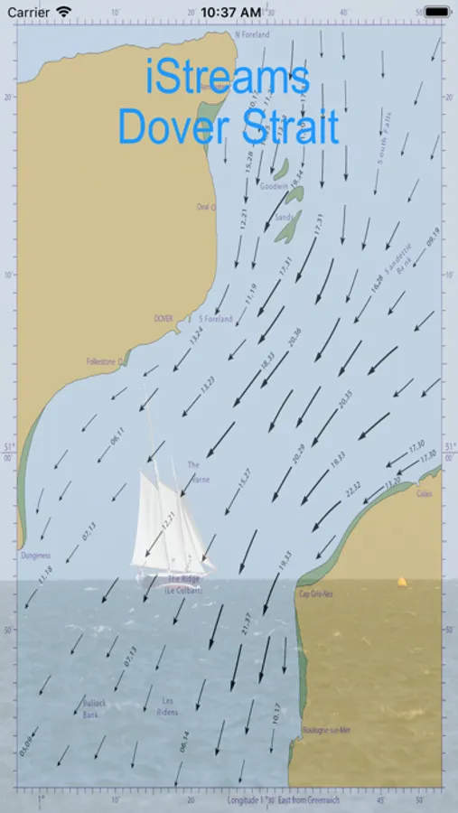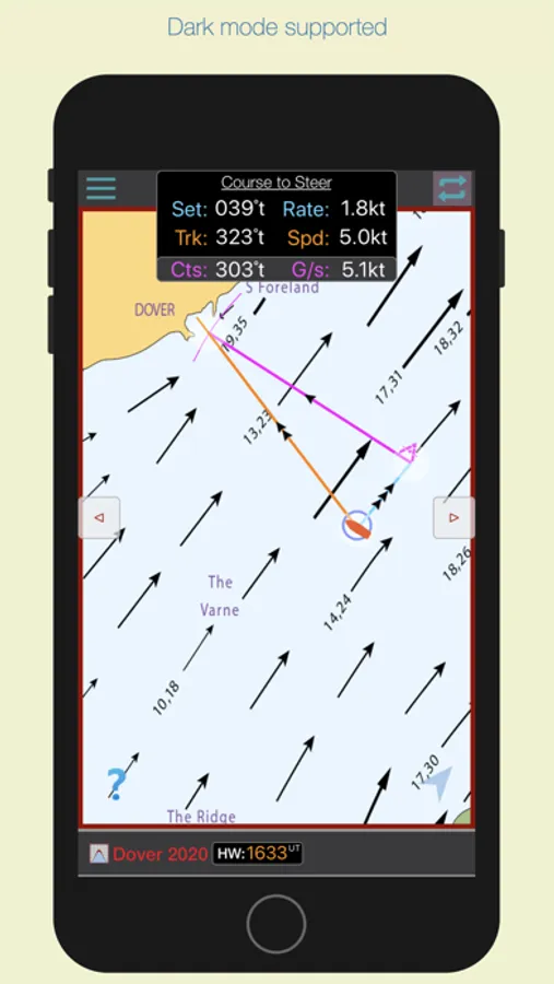 iStreams displays the valid hourly Dover Strait tidal stream atlas for the current real time, in reference to the time of high water at Dover... a smart app, fully functional offline. With tools to measure tide set and interpolated rate.