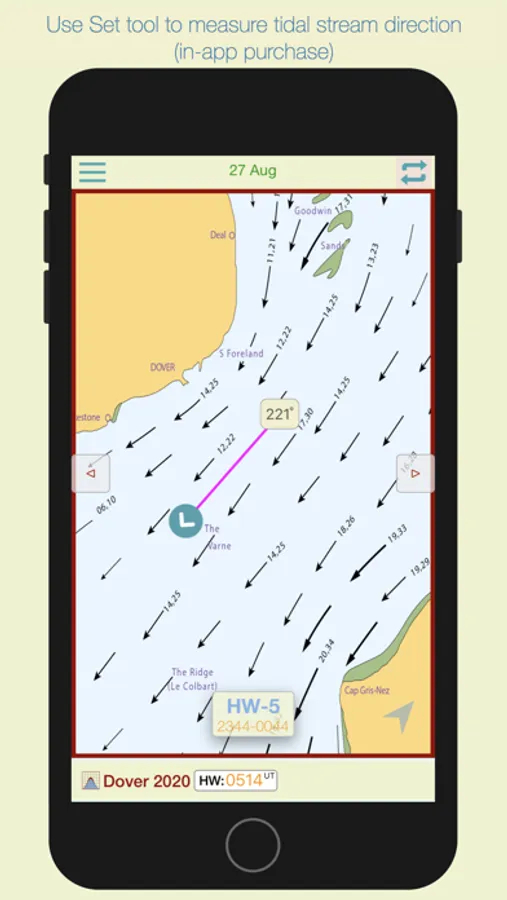 Select the 'Set' tool to measure the precise true course of any tidal stream arrow. (in-app purchase)