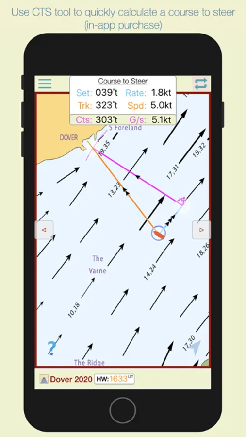 Select the 'CTS' tool to calculate 'Course to Steer'. (in-app purchase)