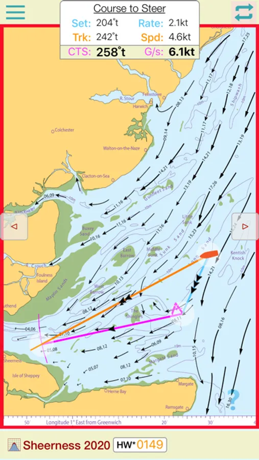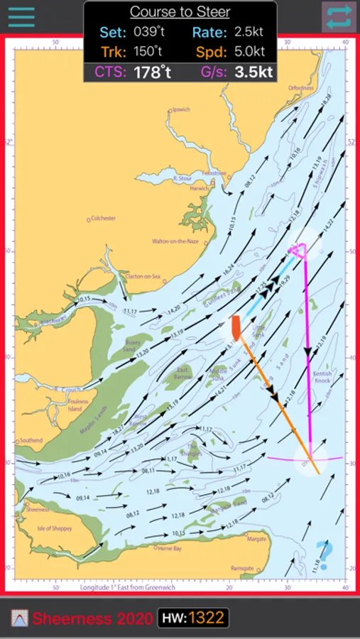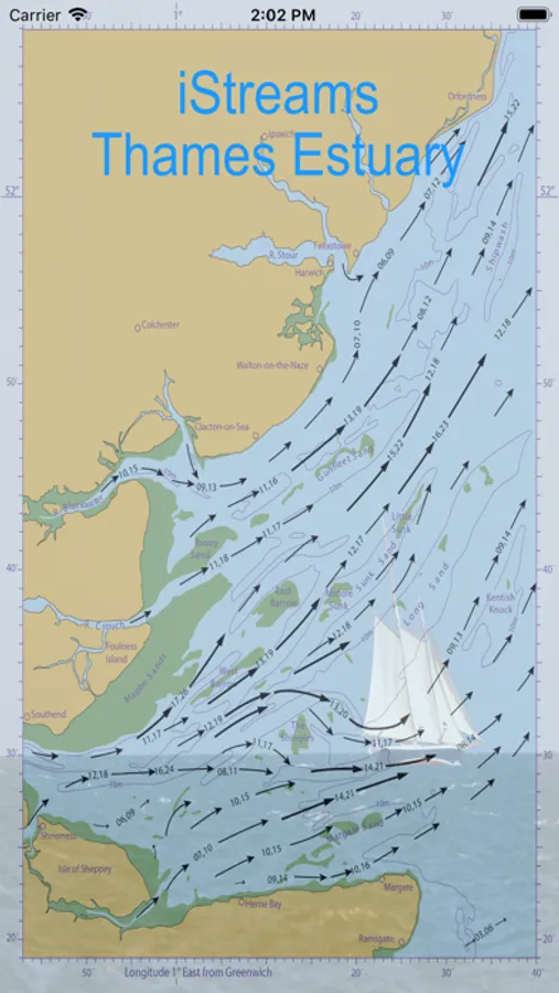 iStreams displays the valid hourly Thames Estuary tidal stream atlas for the current real time, in reference to the time of high water at Sheerness... a smart app, fully functional offline. With tools to measure tide set and interpolated rate.