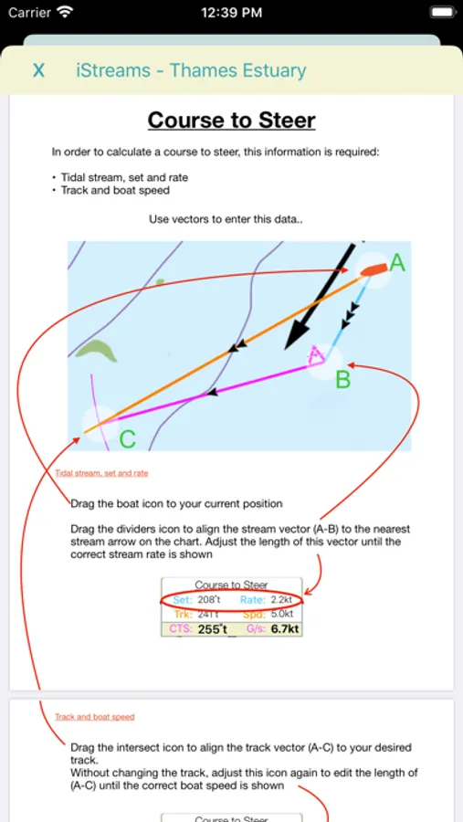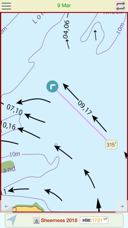 Select the 'Set' tool to measure the precise true course of any tidal stream arrow. (in-app purchase)