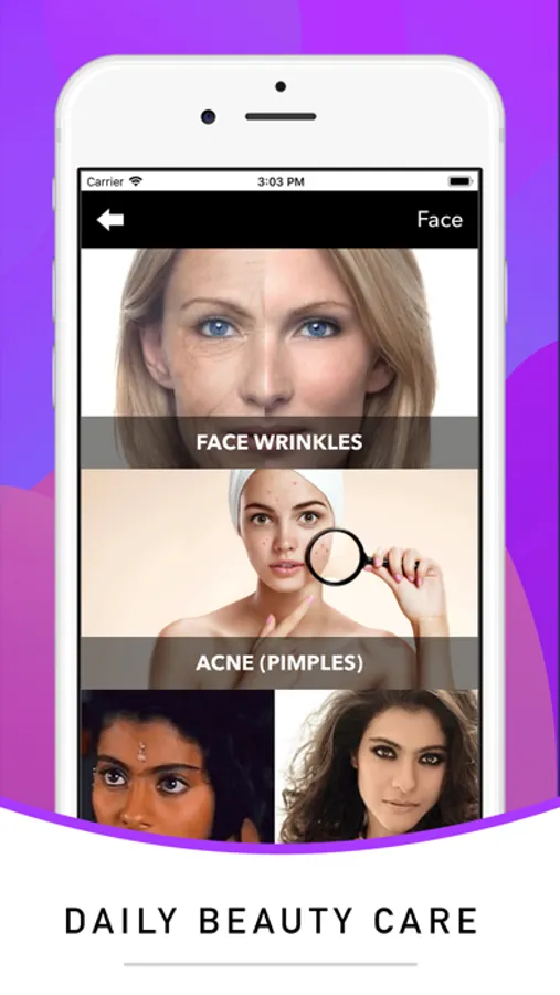 2. Problems of Face: blackheads, teeth whitening, face wrinkles, fair skin, dark lips, acne(pimples), blemishes