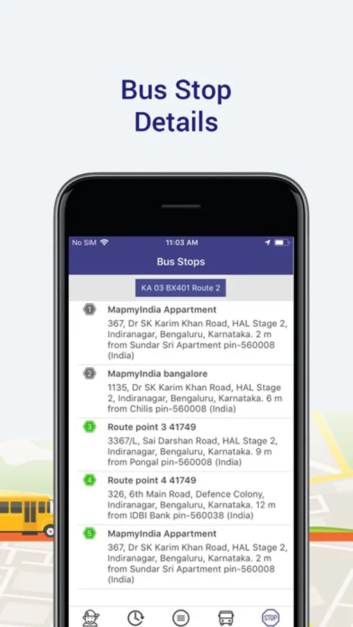In case, if the kid deboards the bus at a stop other than the assigned stop, then the complete address will be shown in the app, which will be helpful to the parents to know the exact boarding and deboarding location of their kids.