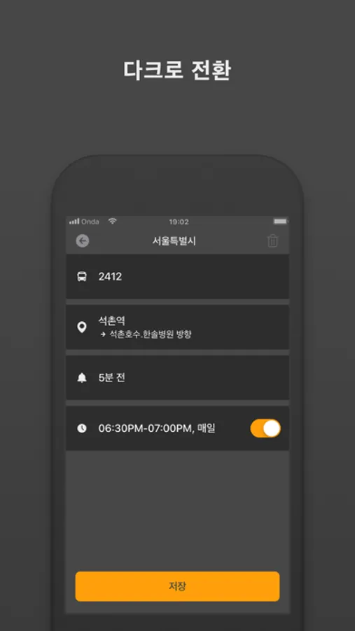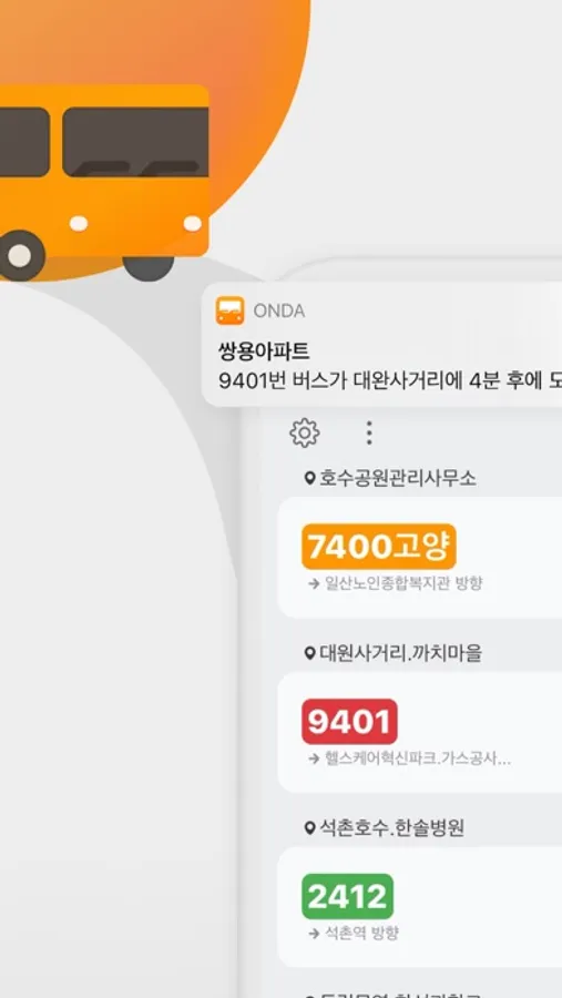 •출근을 하든, 도서관에서 공부하든, 비가 오든, Onda는 30분마다 오는 버스를 놓치지 않고 우아하게 타도록 도와줍니다.