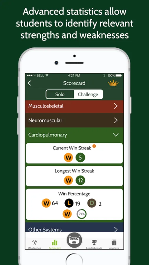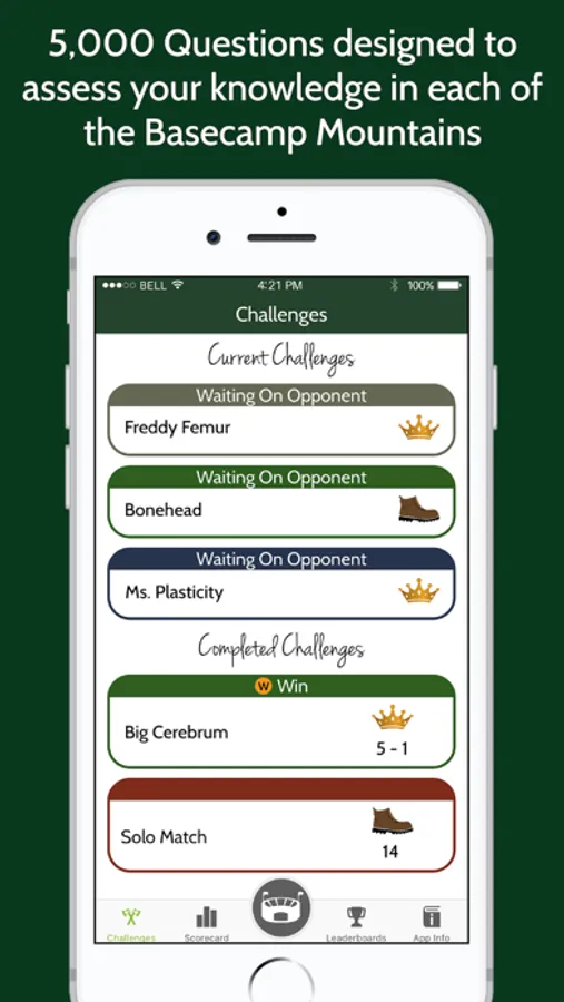The Arena app allows current Basecamp users to utilize our competitive games King of the Mountain and Climb, anytime and anywhere. Play the games in solo mode or challenge a classmate to a battle of wits. Collectively, the two game modes offer over 5,000 questions designed to assist students to commit critical core academic content to long-term memory. The questions are presented in five unique Mountains (i.e., Musculoskeletal, Neuromuscular, Cardiopulmonary, Other Systems, Non-Systems). The games add a competitive aspect to studying and fully engage students as they learn. See how you stack up to the competition! Students can explore their performance data using the Arena – Scorecard and Leaderboard. Summative data collected in the Arena can be used to direct future remedial efforts. Lace up those hiking boots and let the games begin!