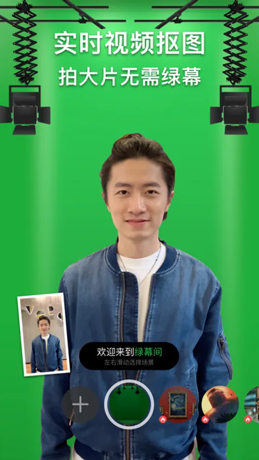 录制视频时,实时抠出人像,随意替换身后背景。拍大片无需绿幕,打开你便是主演,秒变朋友圈最潮视频