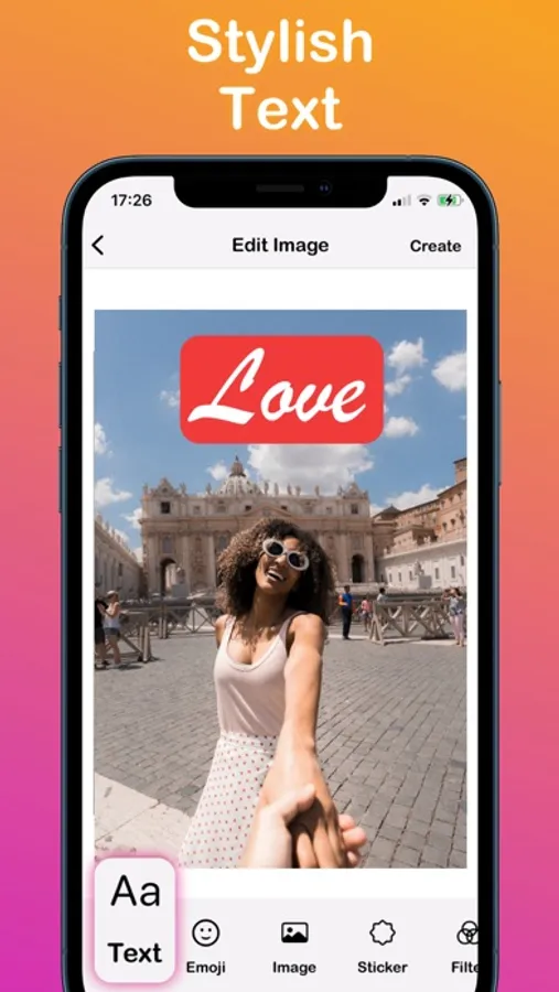 * Add text on photo and custom typography using a wide variety of fonts and colors.