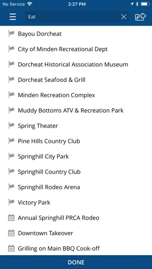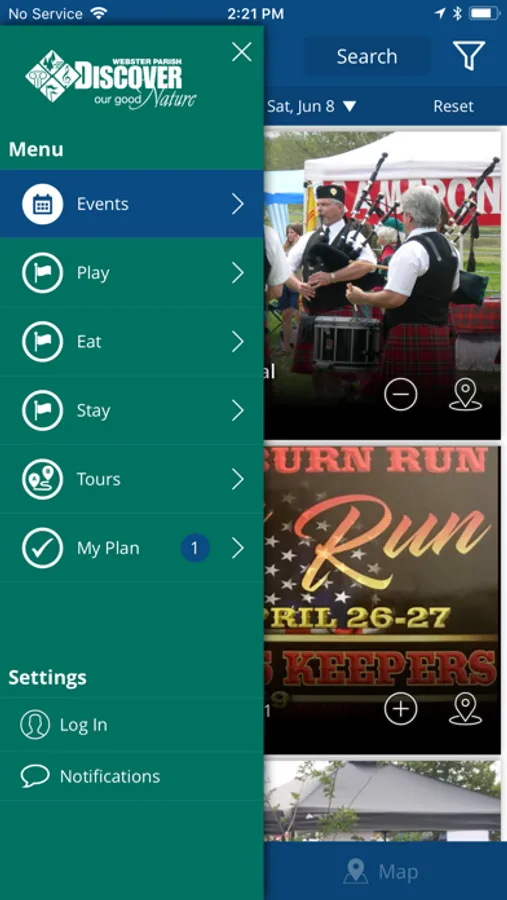 • Share events, places, and your custom plan with friends so they can join you in Webster Parish!