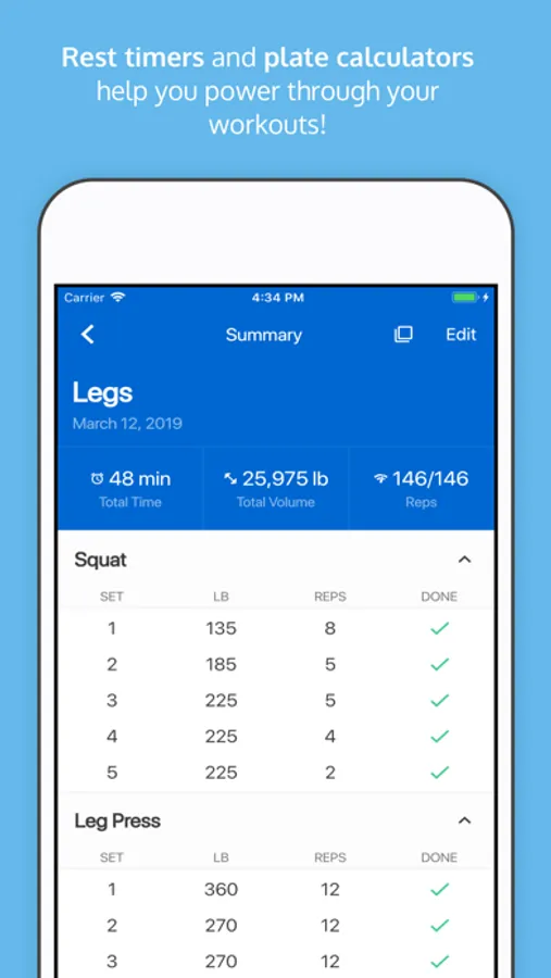 The builder makes it easy to create routines from over 1000 exercises. Rest timers and plate calculators help you power through your workouts! Stats and charts help you keep track of your progress so you can continue making gains!